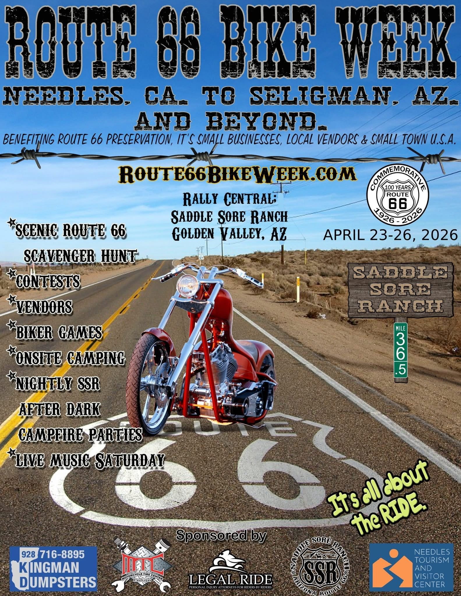Welcome to “Route 66 Bike Week”. A rolling rally that offers you a trip back in time, to explore lots of historic americana and small town USA. Route 66 Bike Week is recognized as the last full week in April annually. It is more of an “appreciation week” for motorcycle riders, than a motorcycle rally. However, there are “rally type” festivities scattered throughout. Mainly in Arizona at this point.